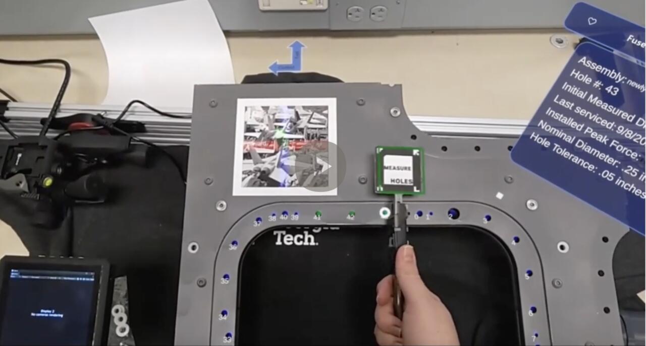 Technical Maturity / Demonstration Results: AR guidance and automated hole identification/measurement has been demonstrated on representative structures; the system architecture is designed for COTS tablets, laptop as well current VR goggles and future VR glasses to provide hands free environment with minimal interruption to the workflow. System has been demonstrated to multiple military and commercial entities.