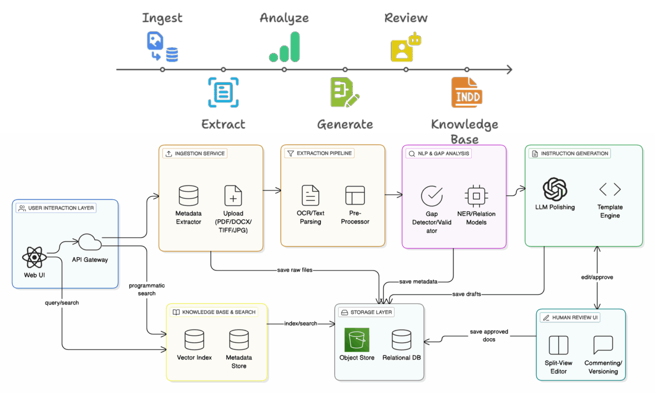 The creation and management of maintenance work instructions at FRCE remains heavily manual, time-consuming, and prone to inconsistencies. Legacy technical manuals and handwritten documentation present significant challenges for digitization and standardization. Without efficient search, retrieval, and drafting capabilities, depot personnel face delays in procedure development, increased administrative burden, and difficulties in transferring knowledge as experienced workers retire.