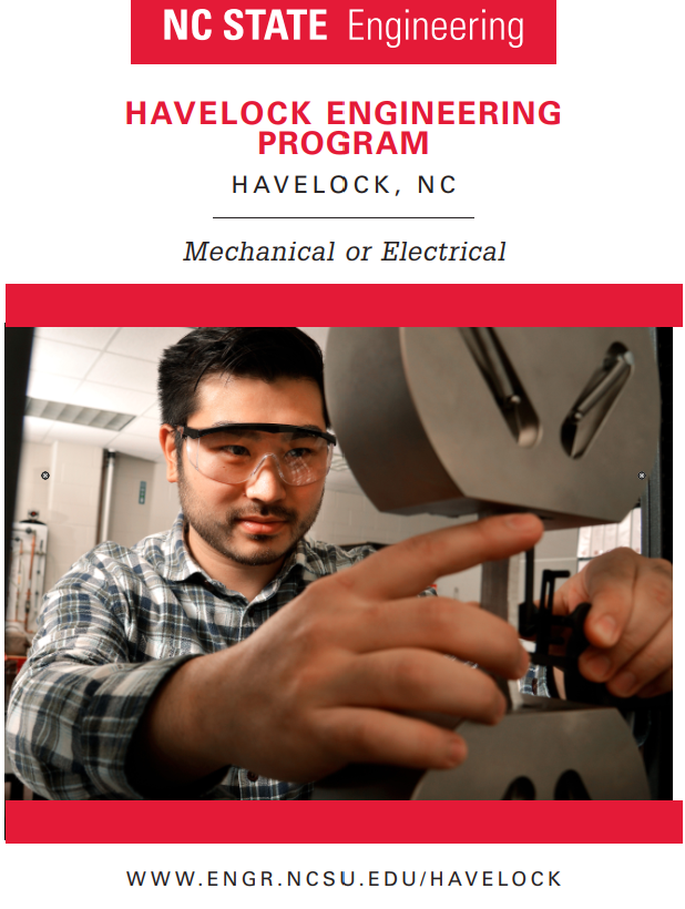 The NC State Havelock Engineering program provides a unique opportunity for ENC residents to complete a Bachelor of Science in Engineering with a concentration in either Electrical Engineering Systems or Mechanical Engineering Systems from NC State without ever leaving Eastern North Carolina.