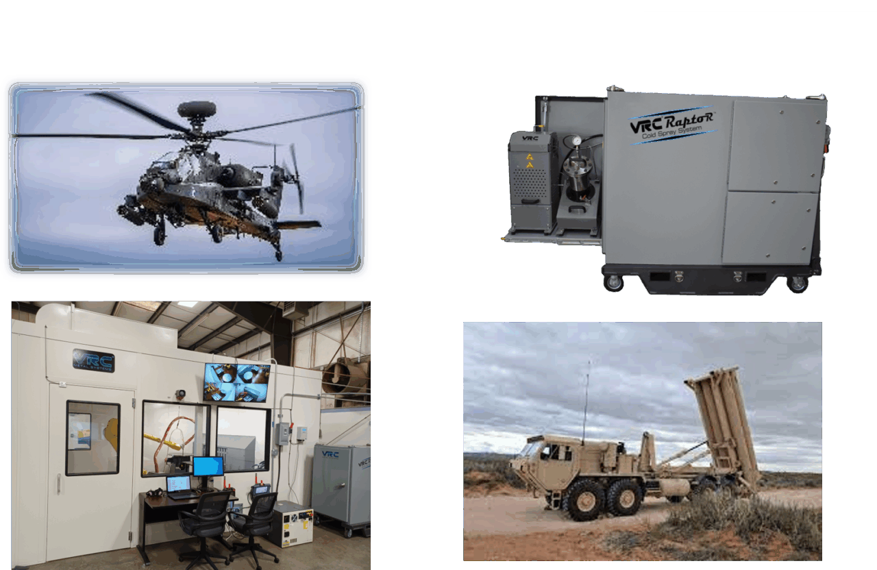VRC Metal Systems, LLC is a company founded in 2013 based on research performed at South Dakota School of Mines and Technology in collaboration with the US Army Research Laboratory (ARL) to design a hand-operable high-pressure cold spray capability. The goal of advancing this technology was to allow for simple but high-quality repairs of DOD assets either in a depot or field environment. Since its founding, VRC Metal Systems has continued to develop this technology, creating more highly portable systems as well as producing robust systems for continuous commercial operation. VRC has successfully commercialized a line of high-pressure cold spray capabilities that has successfully enabled new production and repair activities in the DoD, the energy sector, the heavy industrial sector, and in research and academia. VRC is also working with ARL and other DOD entities to advance the state of the art in High Deposition Rate Additive Manufacturing (HD-RAM) processes like cold spray additive manufacturing, wire directed energy deposition, friction stir additive manufacturing, as well as developing secondary processing techniques for these processes like localized thermal processing, secondary deformation processing, or even machining. VRC is a full service cold spray provider, core capabilities include: Cold Spray Process Development; Equipment Manufacturing, Integration & Leasing; On-Site Repair and Modification; Consumables; Training and Customer Support.